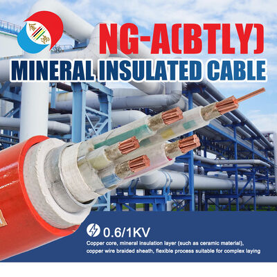 NG-A (BTLY) cable is a versatile, high-performance power cable designed for critical applications requiring flexibility, durability, and fire resistance. Featuring a copper sheath and mineral-based insulation, it withstands high temperatures, humidity, and harsh environmental conditions. Its flexibility makes it ideal for use in confined spaces, while its fire resistance ensures continued operation in emergencies, making it ideal for industrial plants, tunnels, data centers, and other similar locations.