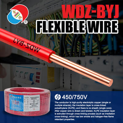 WDZ-BYJ is a high-quality low-voltage (0.45/0.75kV) single-core halogen-free, low-smoke, flame-retardant building wire, specifically designed for terminal power distribution (lighting, sockets, low-power appliances) in residential and commercial buildings. Its optimized single-core structure ensures reliability and ease of use: 1/2-grade high-purity solid/stranded copper conductor (low resistance, stable power supply), halogen-free low-smoke XLPE insulation (environmentally friendly, fire-resistant, anti-aging, and high-temperature resistant core wire), and no outer sheath (streamlined design for easy conduit installation). "WDZ" stands for Halogen-Free (W), Low Smoke (DZ), and Flame Retardant—the gold standard for environmentally friendly and safe indoor wiring; "BYJ" stands for XLPE insulated building wire (single core, for terminal wiring). Its unique feature is that it combines the environmental safety of halogen-free materials with the practicality of single-core wiring, eliminating fire and environmental risks in indoor spaces, making it the preferred choice for modern green buildings.