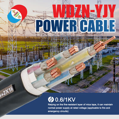 WDZN-YJY is a high-quality low-voltage (0.6/1kV) triple-protected power cable designed for critical emergency power transmission (fire pumps, emergency lighting, life support equipment), where fire safety, environmental friendliness, and uninterrupted power supply are paramount. Its advanced multi-layer structure ensures comprehensive reliability: Class 2 high-purity stranded copper conductors (low resistance, stable transmission), cross-linked polyethylene (XLPE) insulation (anti-aging, high-temperature resistant), mica tape fireproof layer (fireproof and non-combustible core wire), halogen-free low-smoke filler layer (moisture-proof, environmentally friendly), and halogen-free polyolefin outer sheath (Class B flame retardant, corrosion-resistant, UV resistant). "WDZN" = Halogen-free (W) + Low-smoke (DZ) + Flame Retardant (Z) + Fire Resistant (N); "YJY" = Cross-linked polyethylene (XLPE) insulation and halogen-free polyolefin sheath. Its unique feature is that the integrated mica tape fireproof layer combines flame retardant and halogen-free properties, achieving the functions of "preventing fire spread + maintaining power supply + no toxic smoke" in a single cable, eliminating the need for separate emergency cables and flame-retardant cables.